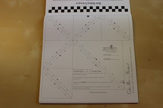 :-) Papirblokk med ark til papirsøm med symaskin. Denne har 6 forslag/mønster til blokker du kan sy sammen. 44 ark i hver blokk. Legg 2 biter 10" x 10" rette mot rette, 1 mønstret og en "rolig" i kontrast-farge. Sy på de stiplede linjene i nummerert rekkefølge. Etterpå kutter du med rullekniv eller klipper på de heltrukne linjene.